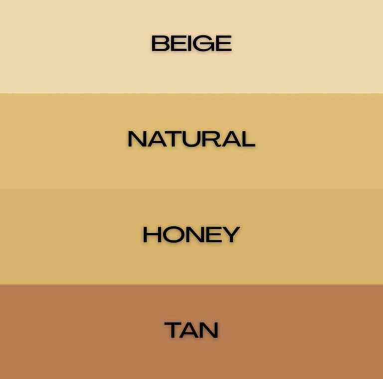 Beige – untuk kulit cerah natural Natural – sesuai untuk tona sederhana seimbang Honey – warm undertone dengan sentuhan keemasan Tan – untuk kulit sawo matang hingga gelap dengan natural warmth